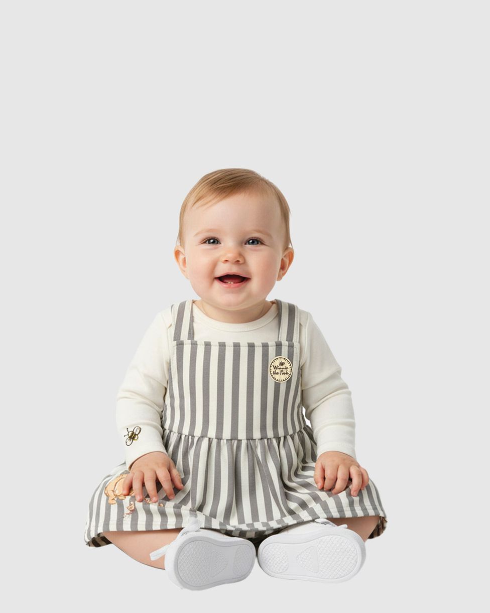 O Conjunto Bebê Menina Body + Salopete Ursinho Pooh da Malwee Kids é puro encanto. Feito em malha algodão, une o toque suave do algodão ao charme das listras. Com detalhes do clássico da Disney®, garante um visual lúdico, confortável e cheio de estilo para qualquer ocasião.