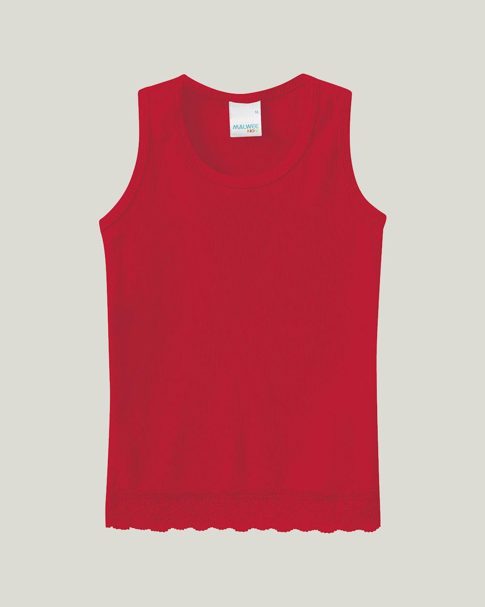 Blusa confeccionada em ribana conforto, um tecido de ótimo caimento e elásticidade. Modelagem tradicional, que acompanha as linhas do corpo com muito conforto. Modelo com decote redondo e alças médias. Detalhe de rendas na barra. Uma peça básica e romântica para as produções diárias da sua pequena. Aposte em calça de tecido e sandália flatform!
