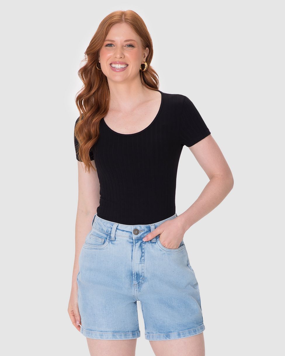 Blusa Básica Feminina Manga Curta Em Canelado De Viscose