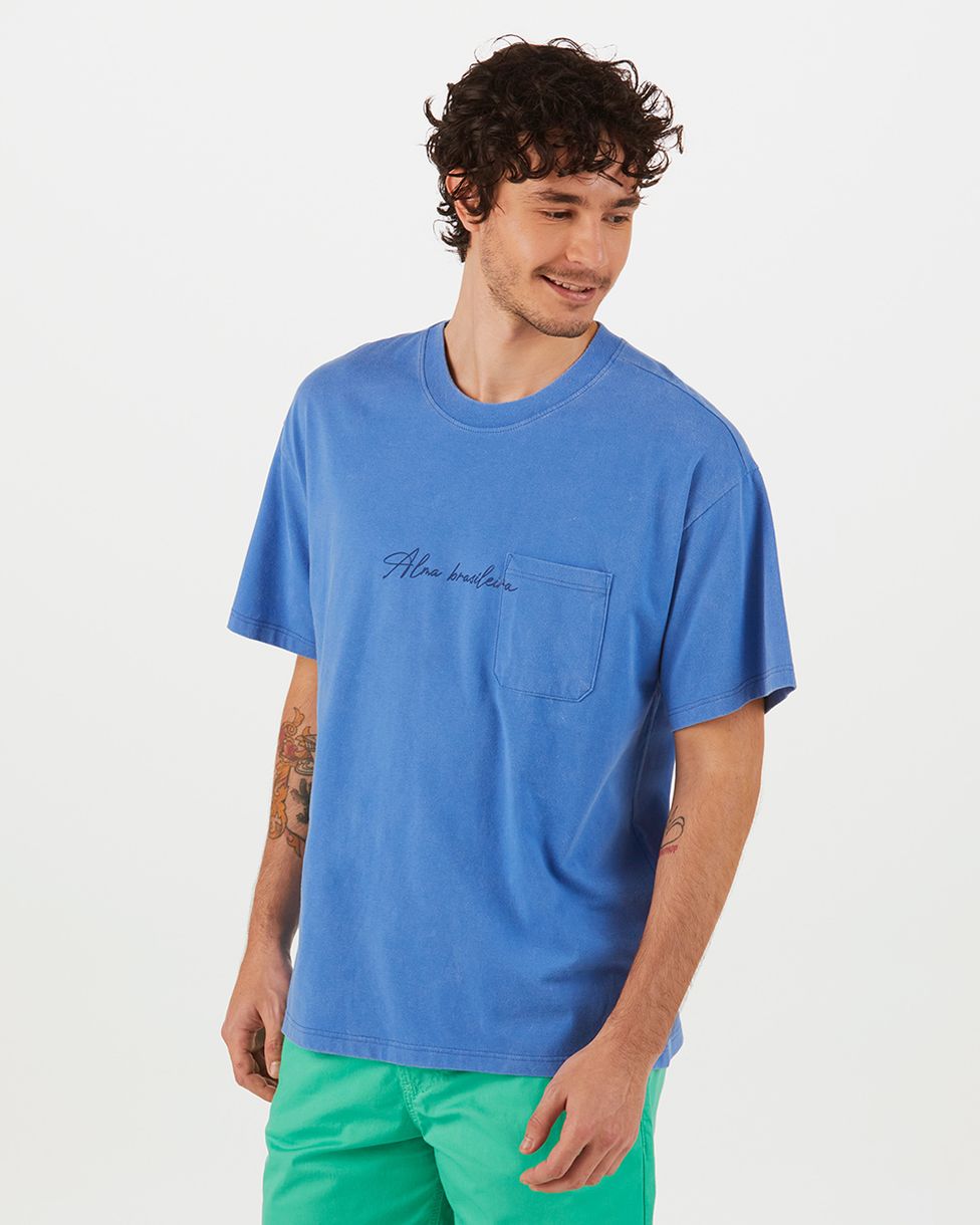 Camiseta Masculina Box Bolso Frontal Alma Brasileira Em Algodão