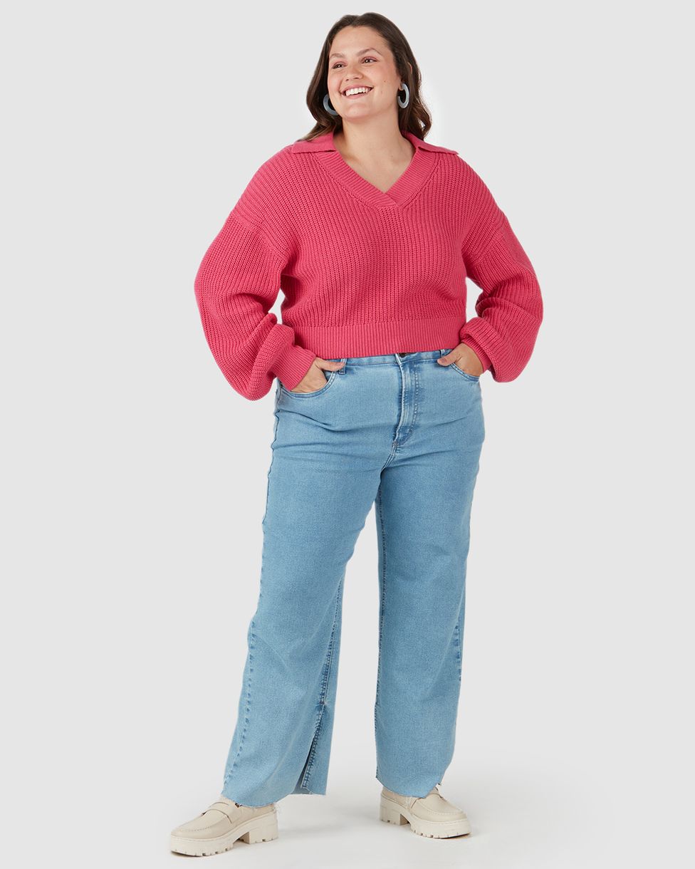 Blusão Cropped Feminino Plus Size Gola V Em Tricô
