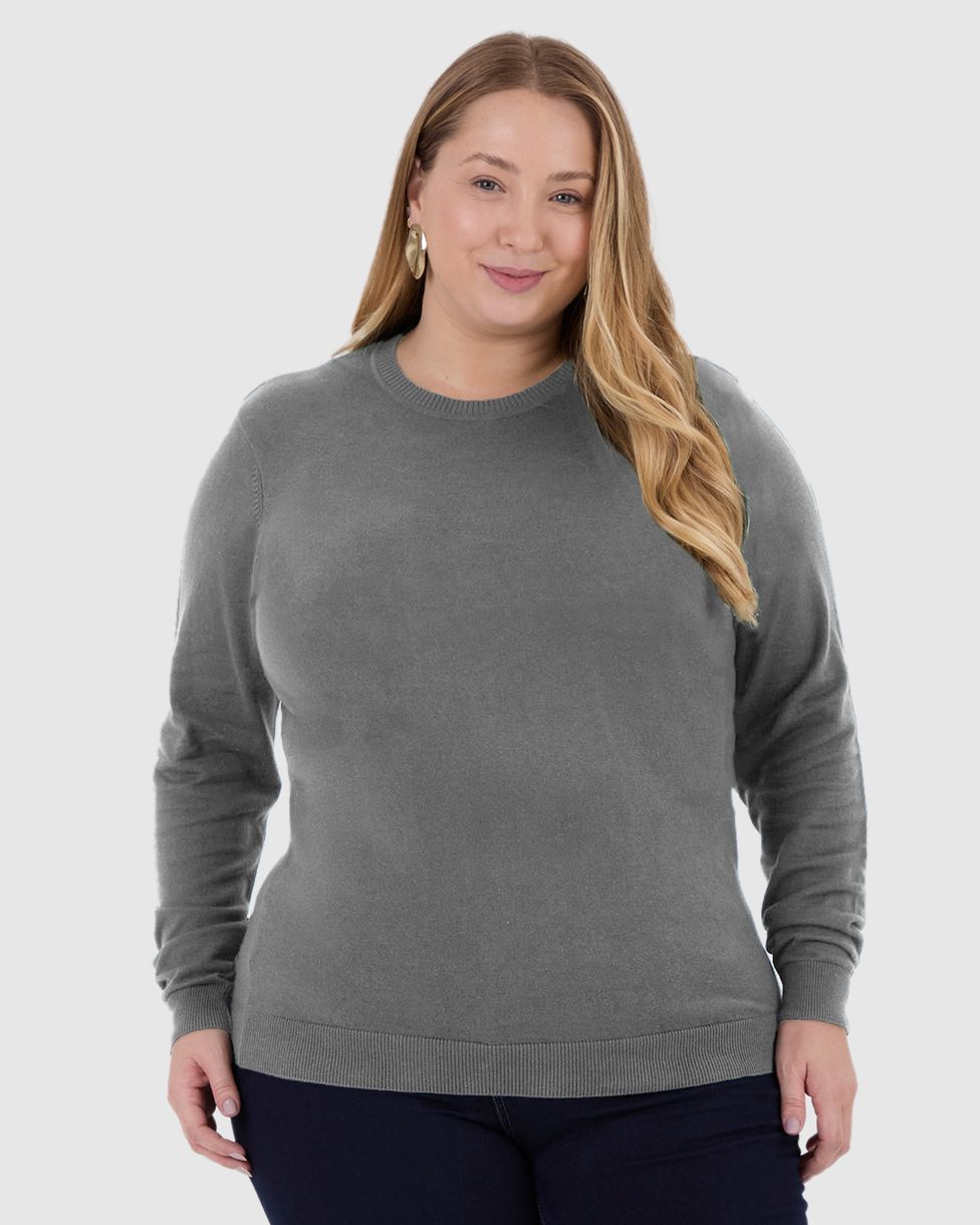Suéter Básico Feminino Plus Size Gola Redonda Em Tricô