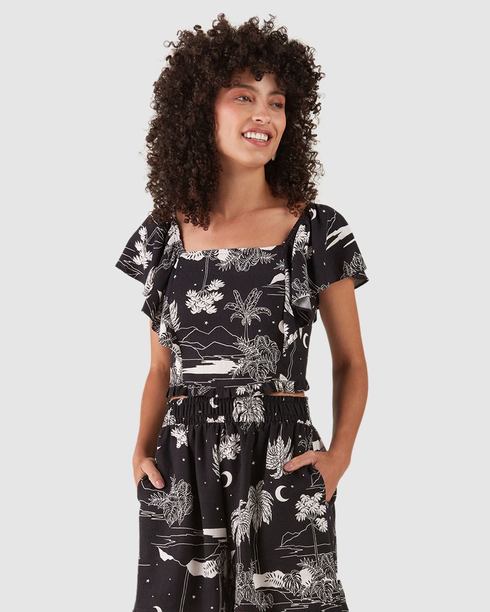 Blusa Cropped Feminina Estampada Em Viscolinho