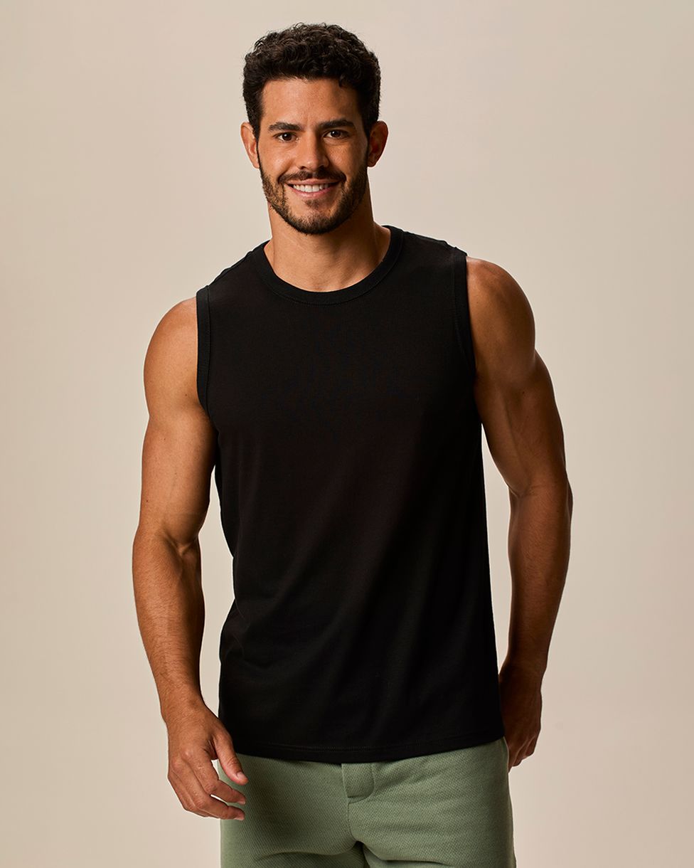Regata Básica Masculina Cava Ajustada Em Algodão