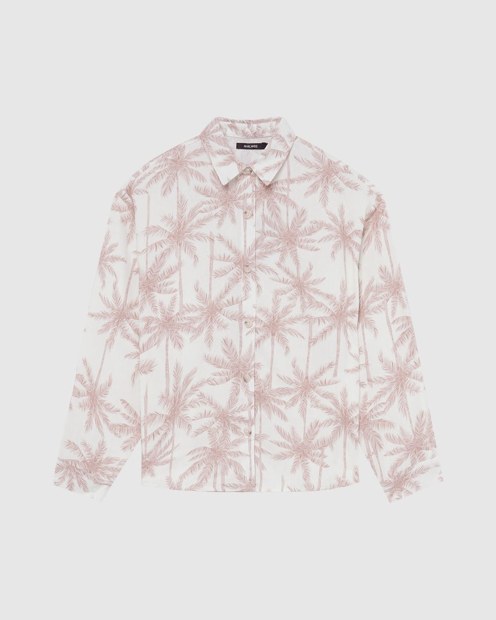 Camisa Feminina Estampa Coqueiros Manga Longa Em Viscolinho