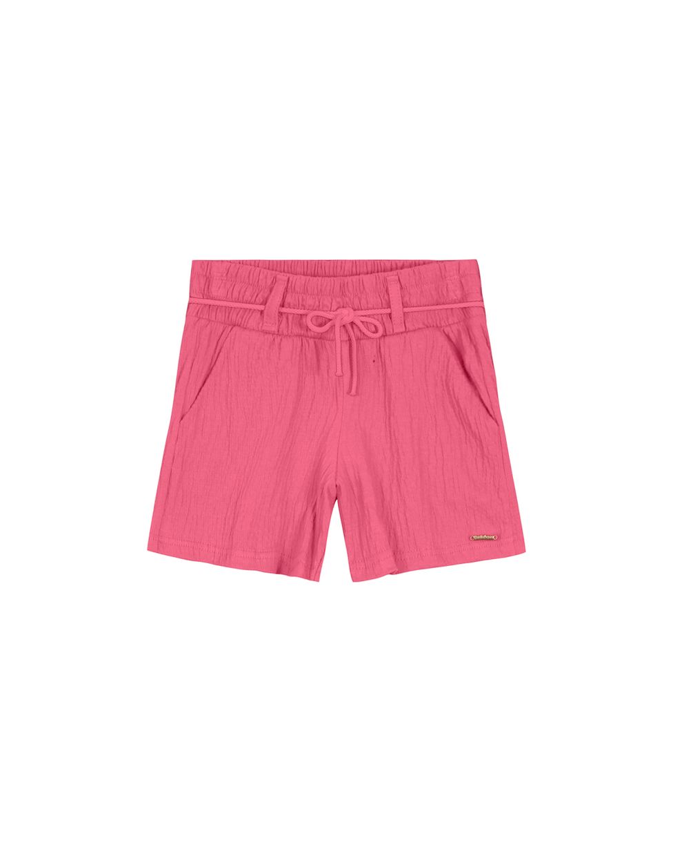 Shorts confeccionado em malha texturizada. Apresentando uma peça básica e com muita versatilidade para o estilo das meninas. Esse shorts conta com cintura em elástico, passantes no cós e bolsos funcionais com detalhe de plaqueta metálica na barra. Combine com blusa da Carinhoso e tênis branco!