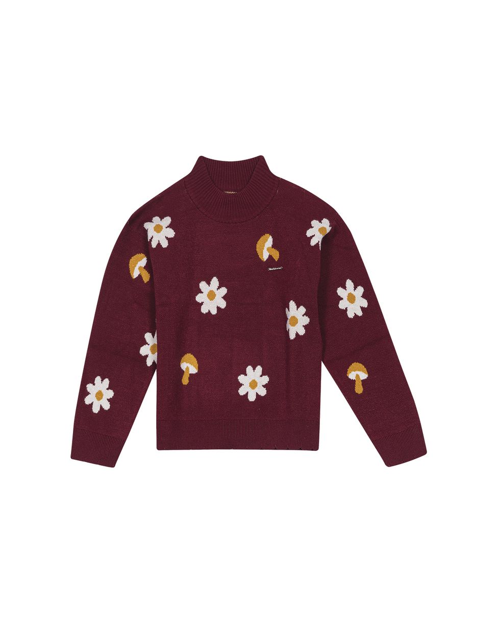 Blusão confeccionado em tricô. Apresentando um modelo super fashion para as pequenas, esse Blusão estampado com flores e cogumelos conta com gola alta, mangas longas, com textura na gola, barra e punhos das mangas e plaqueta metalica no peitoral. Além disso, o tricô é um tecido macio com toque suave, sempre aconchegante e ideal para uso nos dias mais amenos. Uma peça quentinha e perfeita para o dia a dia da sua pequena, invista com shorts jeans da Carinhoso e meia calça, para proteger em dias frios!