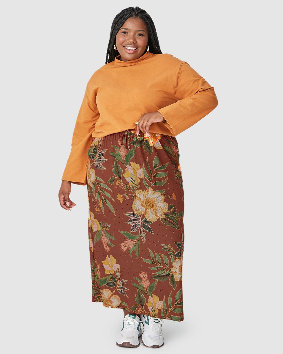 Saia Midi Feminina Plus Size Estampada Em Viscose