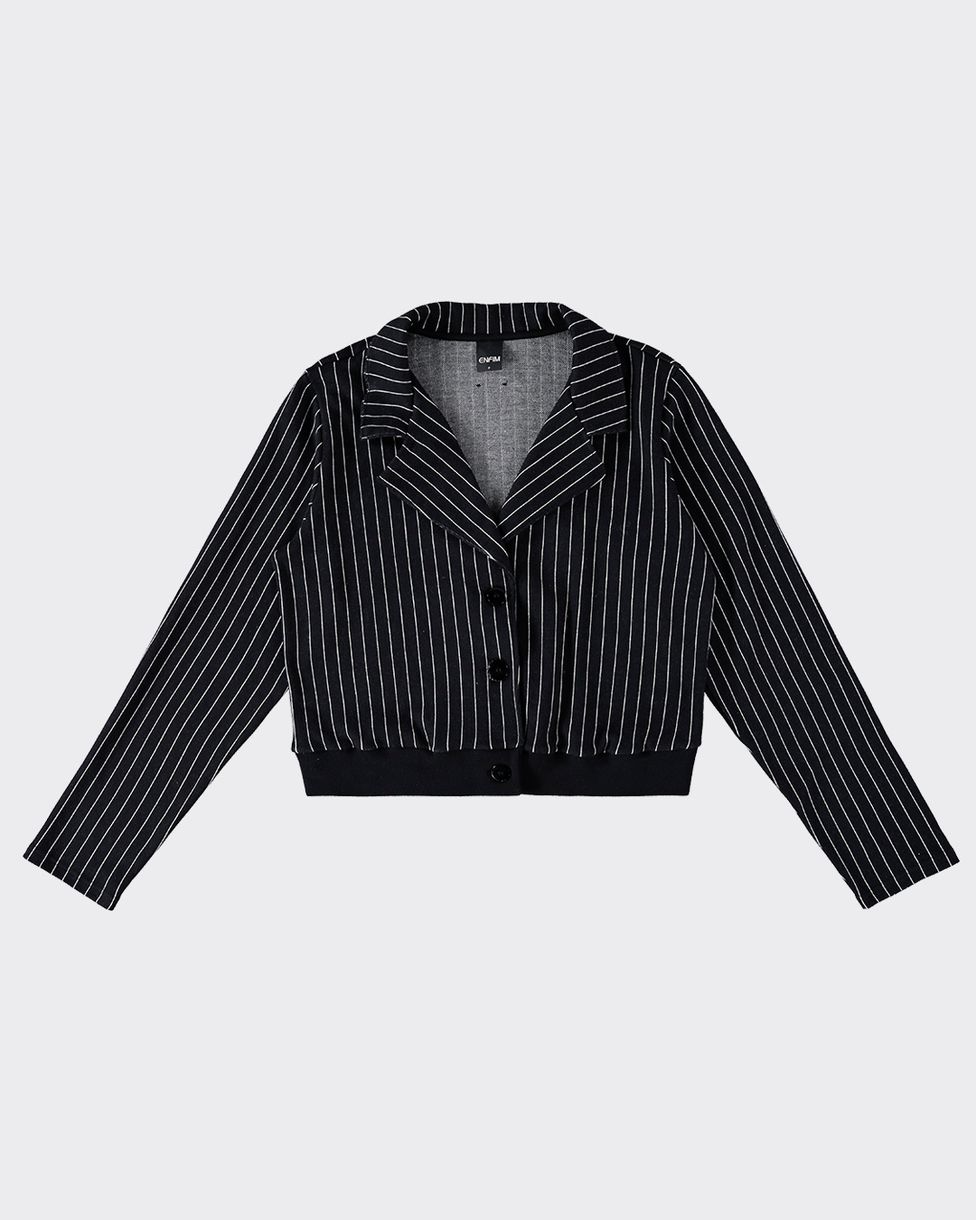 Blazer Cropped Feminino Em Malha Jacquard Listrada - ENFIM