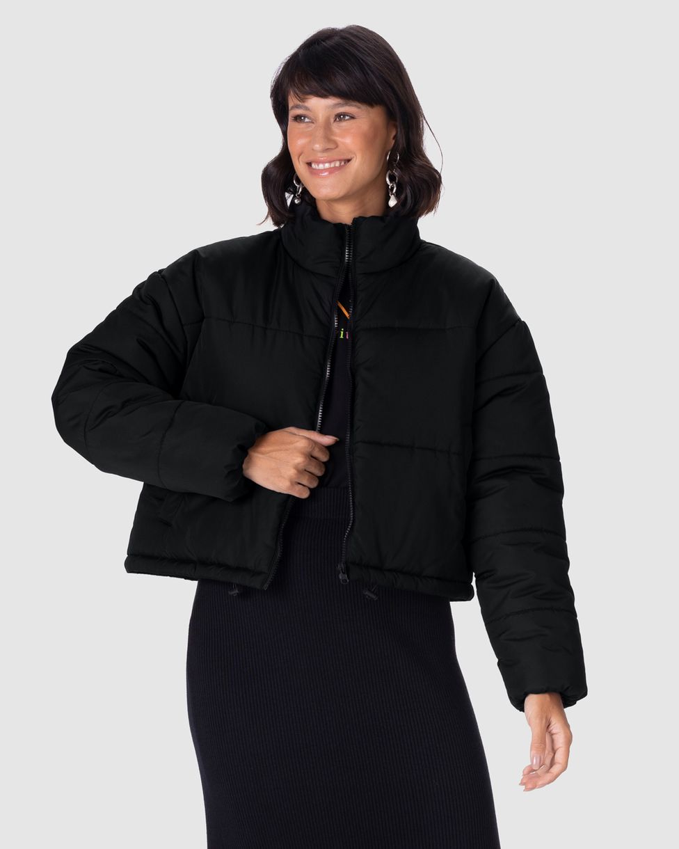 Jaqueta Puffer Feminina Cropped Gola Alta Em Nylon