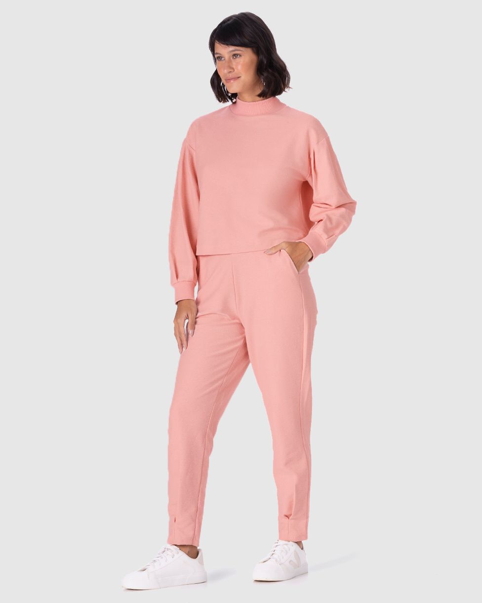Blusão Amplo Feminino Manga Longa Com Pregas Em Moletom Sarjado