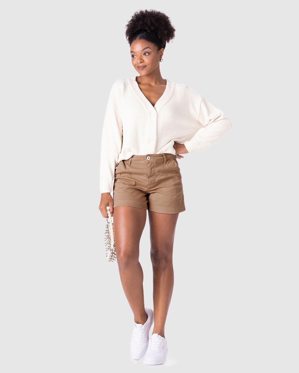 Shorts Alfaiataria Feminino Em Sarja Com Elastano