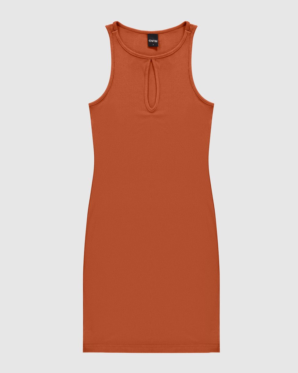 Vestido Feminino Decote Detalhe Vazado Em Malha Viscose Canelada - ENFIM