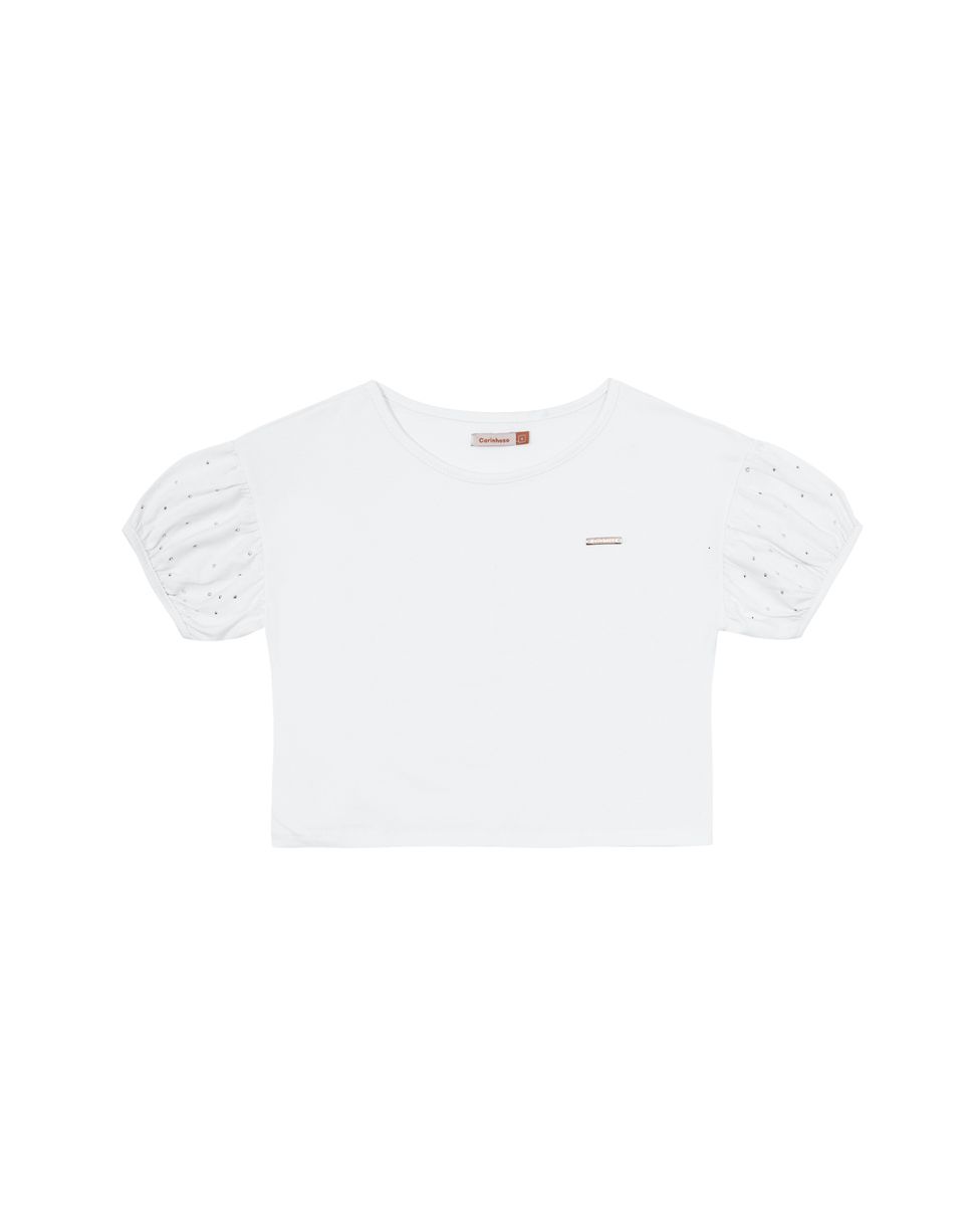 Blusa Menina Cropped Manga Com Strass Em Algodão - Carinhoso