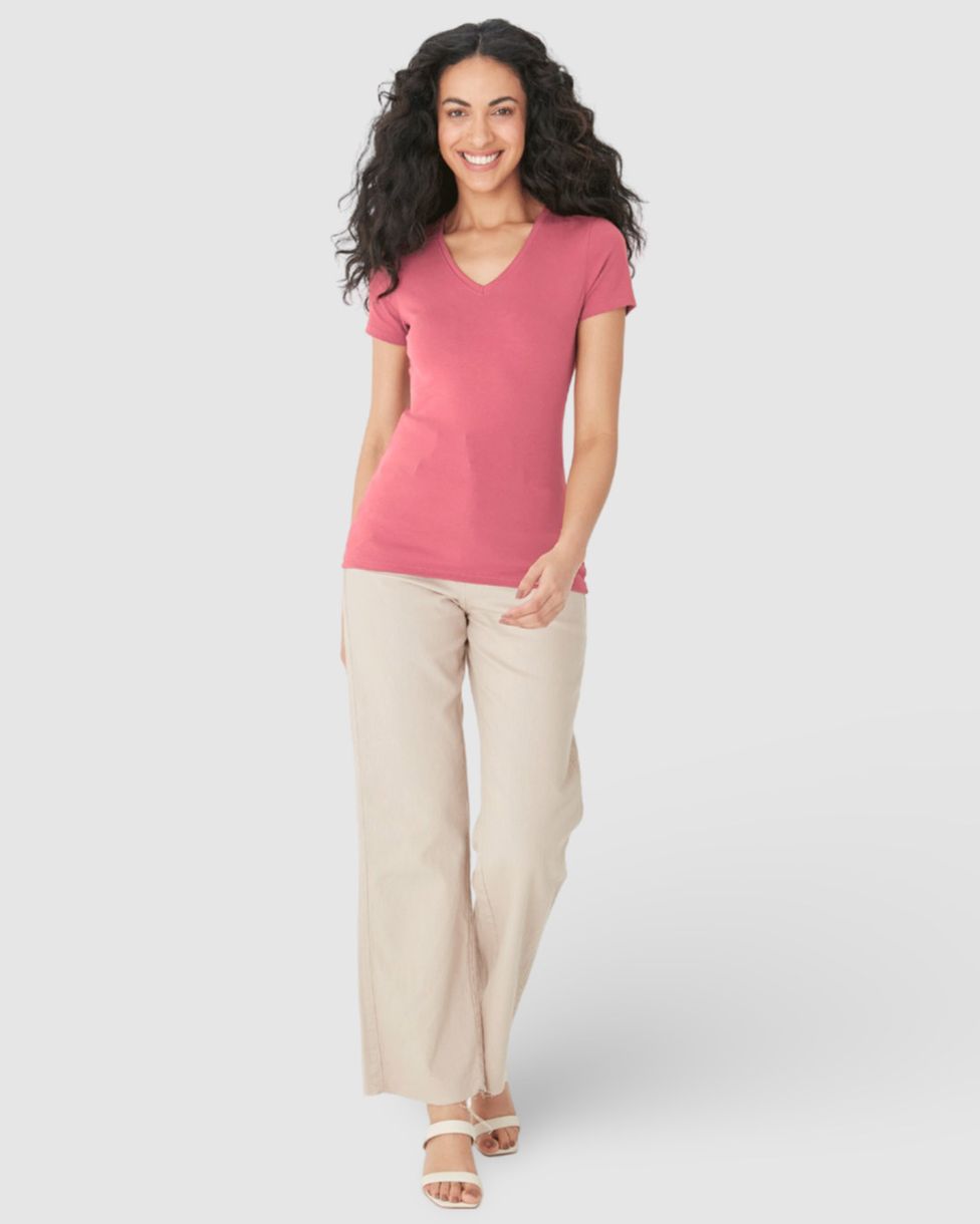 Blusa feminina feita em malha de algodão. A blusa Baby Look é uma peça essencial no guarda-roupa feminino, pois ela pode compor diversos looks! Essa peça com caimento ajustado ao corpo, conta com decote V e mangas curtas. Além disso, ela foi feita em malha de algodão super elástica e leve, sendo confortável, respirável de toque macio e fácil manuseio, garantindo alta durabilidade e versatilidade no uso. É uma peça atemporal e que pode ser usada de infinitas formas. Para uma proposta colorida, combine com peças de sarja Malwee em cores complementares!