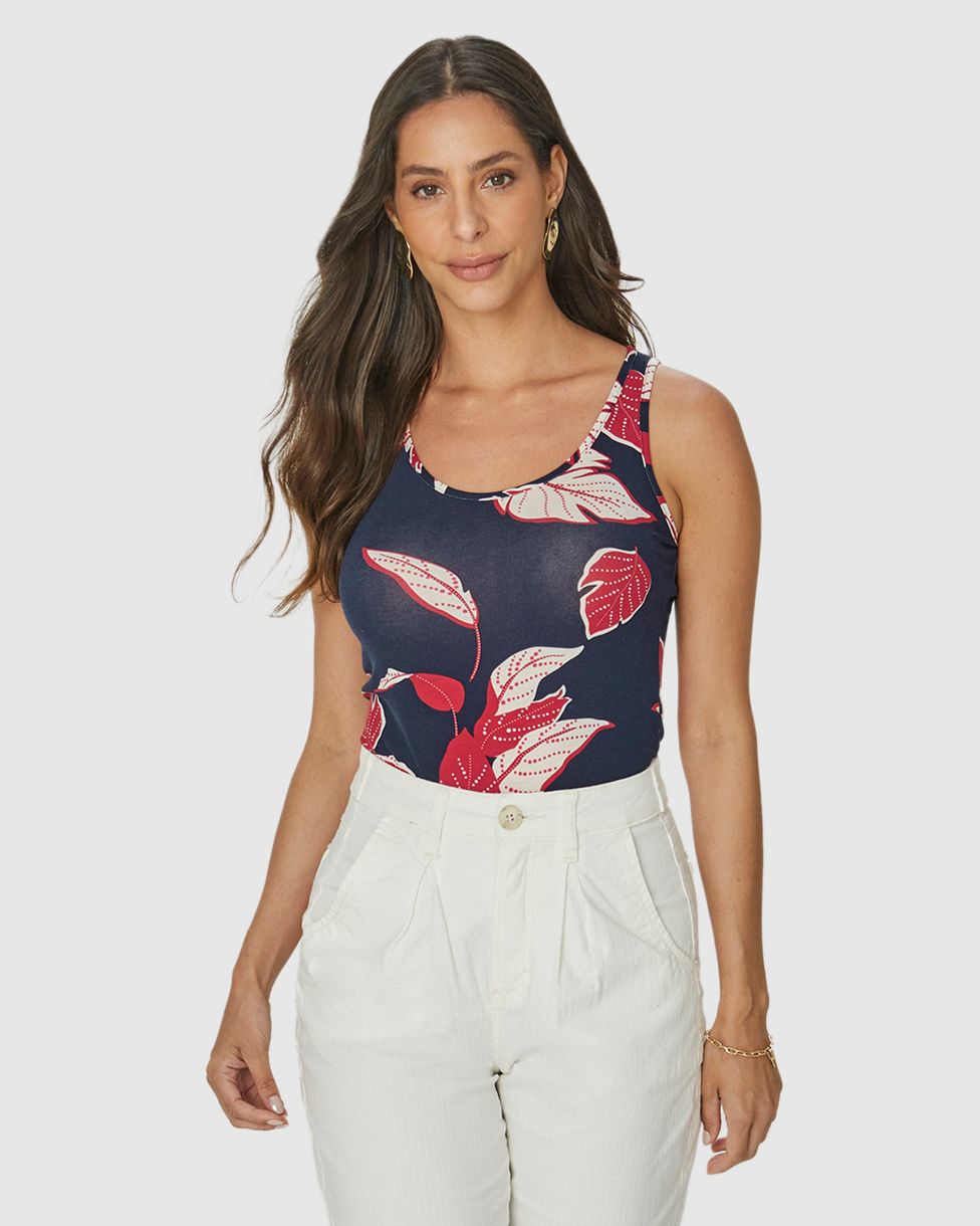 Regata Feminina Decote Redondo Estampada Em Viscose Stretch