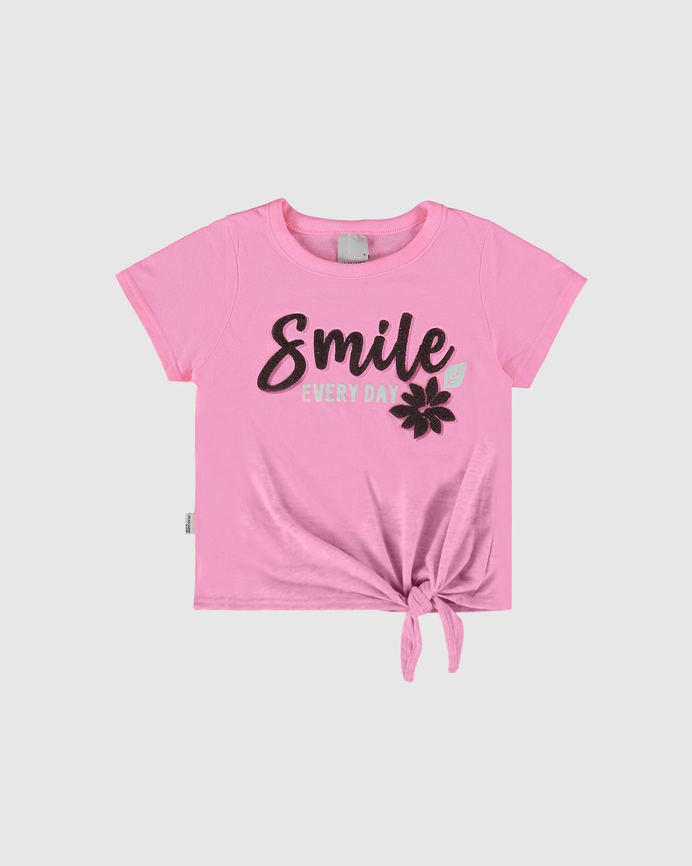 InfantilBlusas e CamisetasBlusas Manga CurtaBlusa Infantil Menina Smile Amarração Frontal Em Malha Rajada Malwee Kids