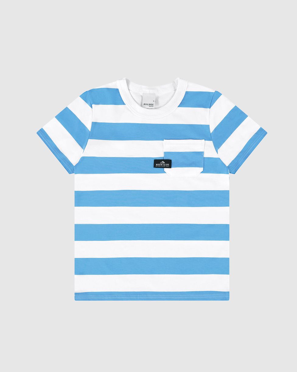Camiseta Infantil Menino Listrada Bolso Frontal Em Algodão Malwee Kids