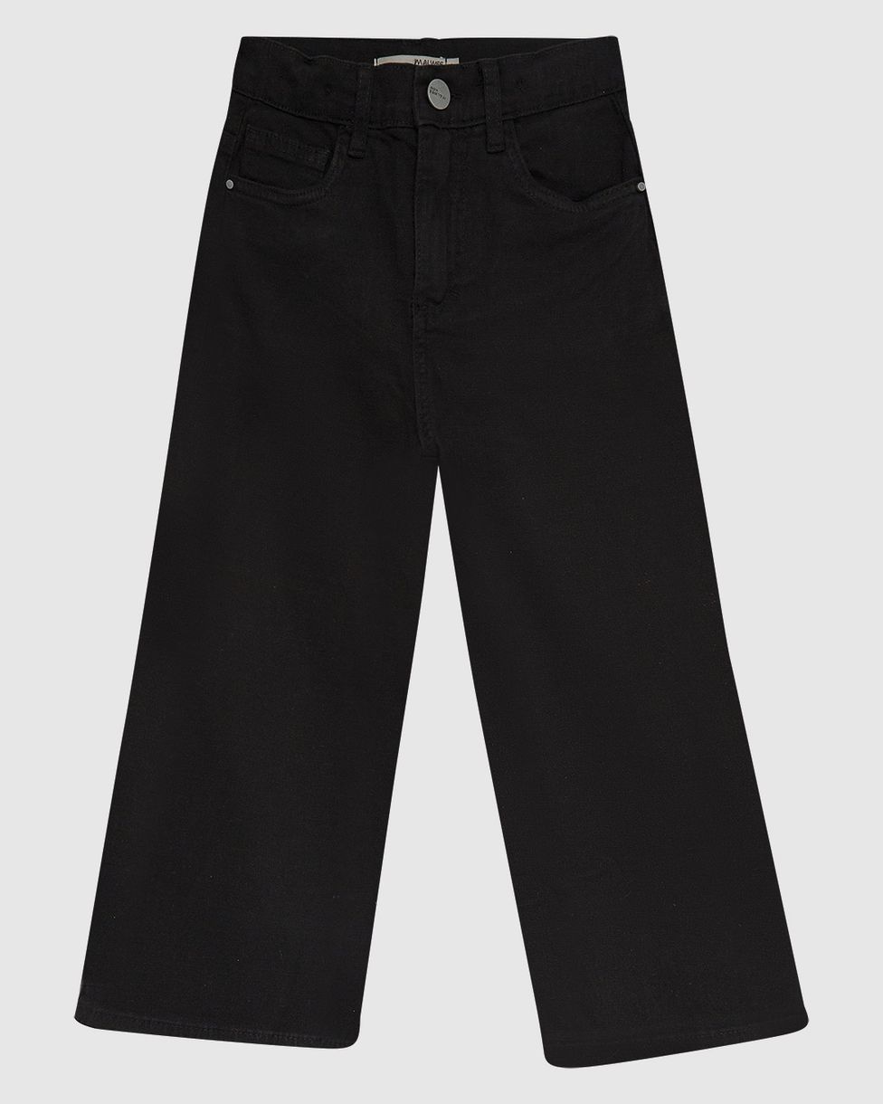 Calça Infantil Menina Wide Leg Cintura Ajustável Em Sarja Stretch Malwee Kids Preto - 10