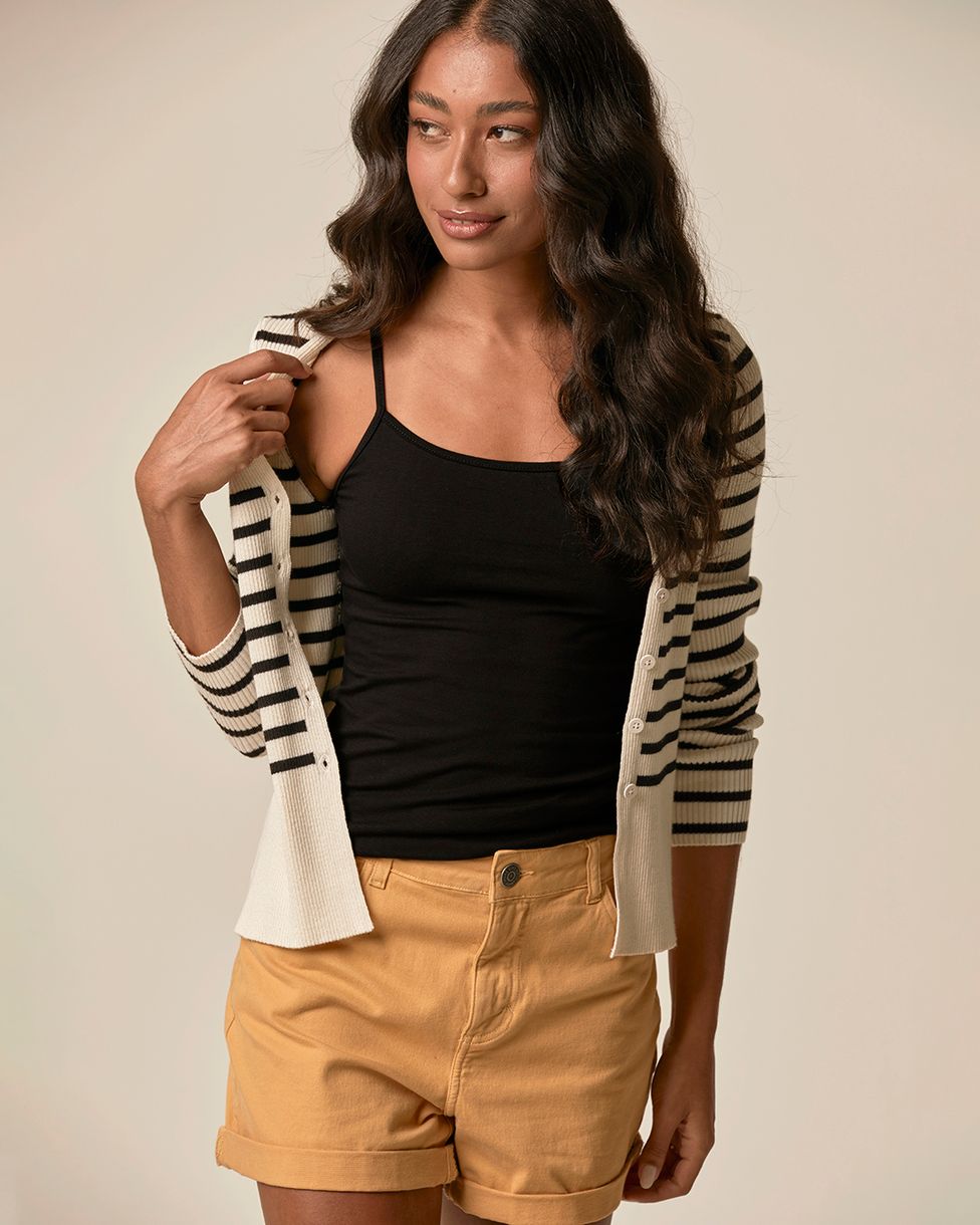 Regata feminina confeccionada em malha com base de 85% de algodão.Apresentando o shape Tradicional, com caimento confortável no corpo, essa regata com alças finas e decote redondo é curinga para os dias mais quentes da estação. Além disso, ela foi feita em tecido confortável de algodão, com toque suave e muita versatilidade no uso. Uma peça perfeita para um dia casual, invista com shorts em jeans e tênis de cano baixo!