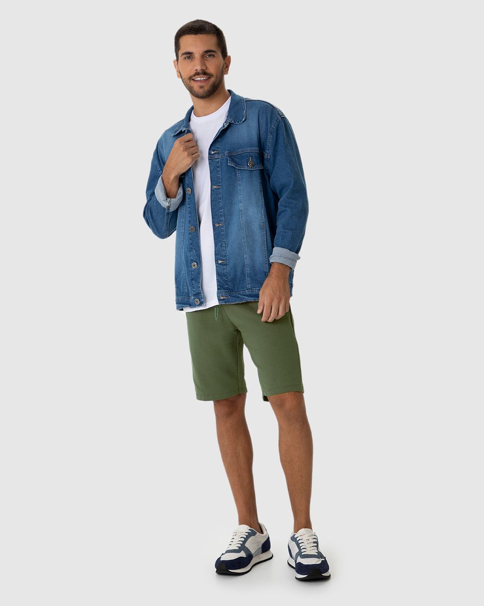 Bermuda Básica Masculina Cintura Média Em Moletom Sem Flanela