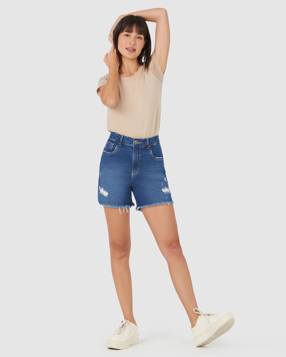 Bermuda Feminina Boyfriend Barra Desfiada Em Jeans Com Elastano