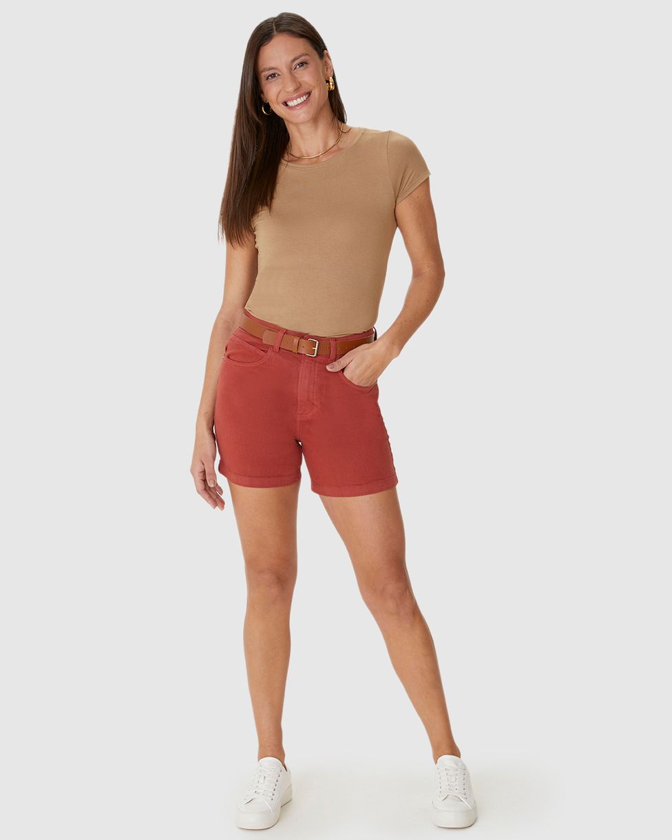 Bermuda Feminina Boyfriend Cintura Média Com Cinto Em Sarja Stretch