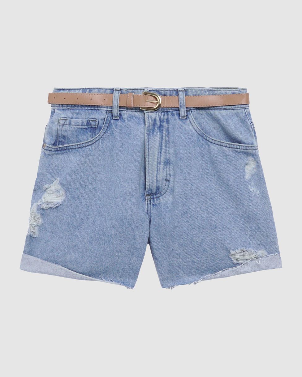 Bermuda Feminina Boyfriend Com Cinto Em Jeans 100% Algodão
