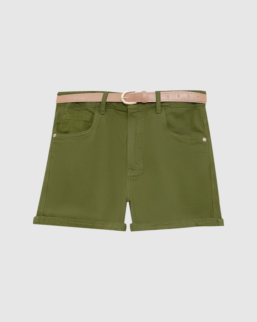 Bermuda Feminina Boyfriend Com Cinto Em Sarja Com Elastano