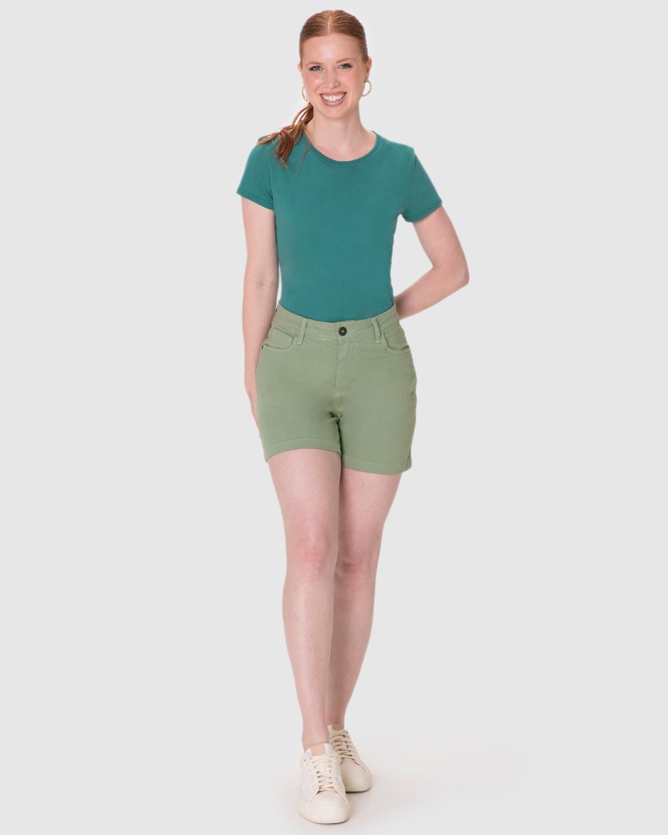 Bermuda Feminina Comfort Cintura Média Em Sarja Com Elastano