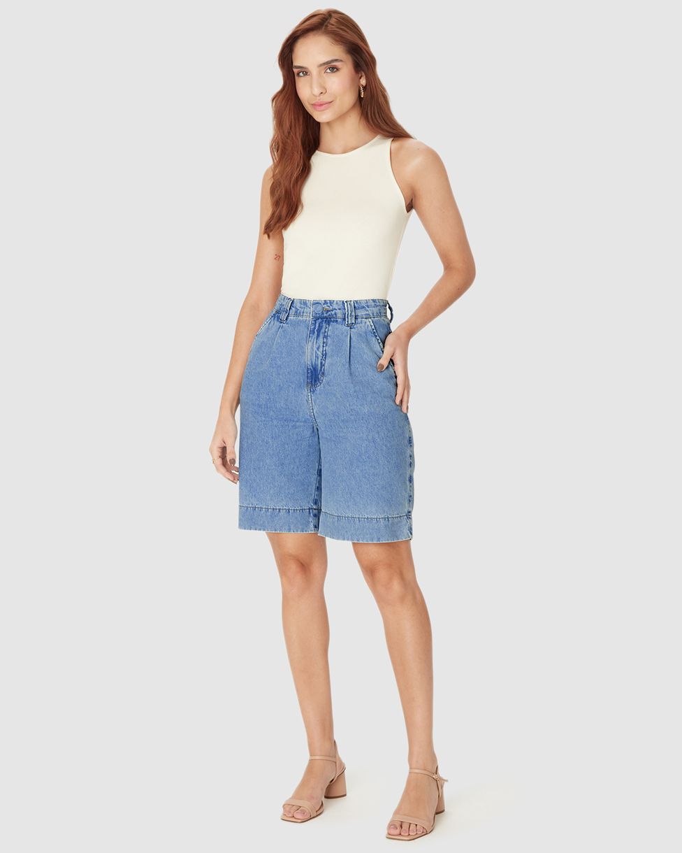 • Bermuda feminina em jeans 100% algodão