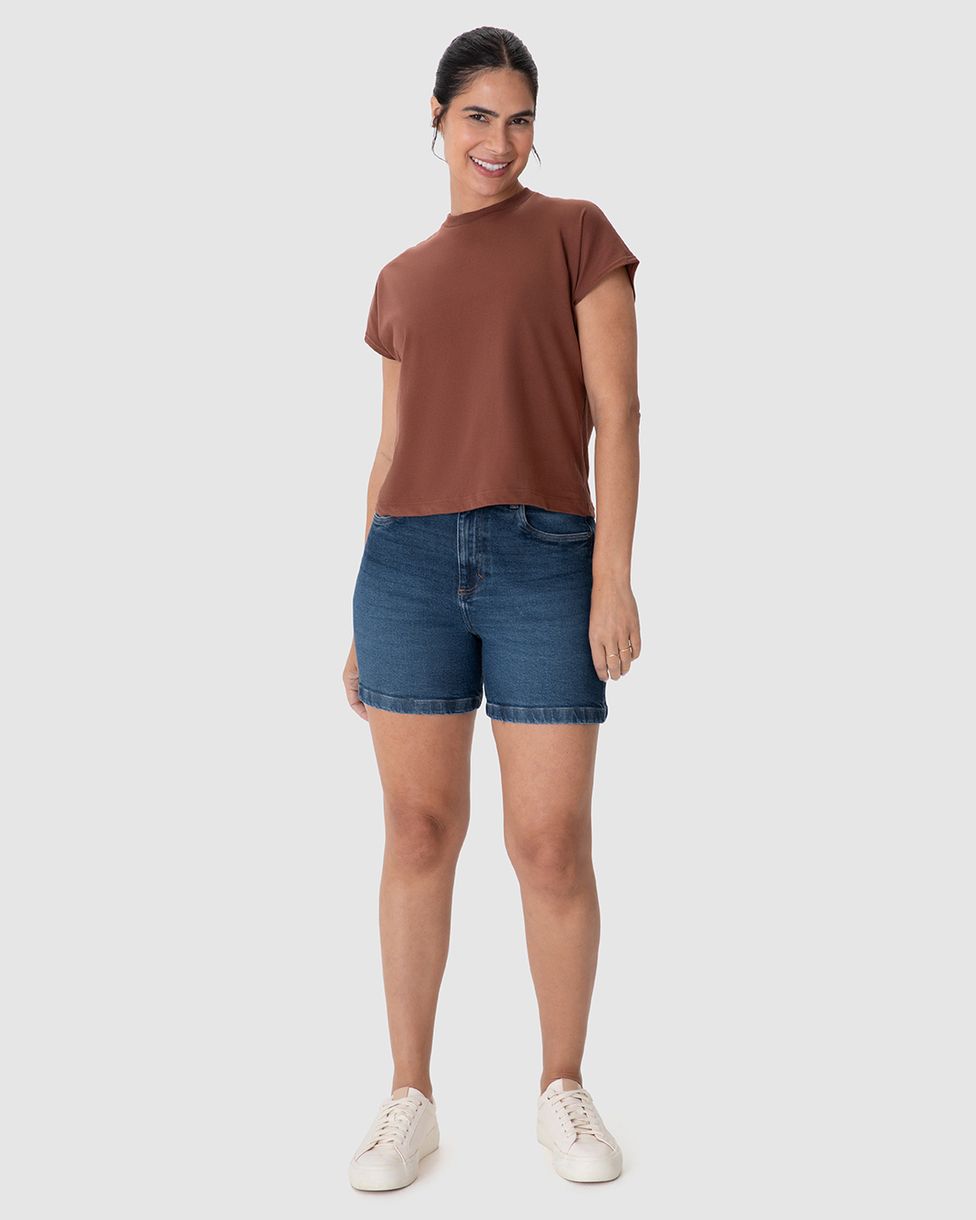 Bermuda Feminina Mom Cintura Média Em Jeans Com Elastano