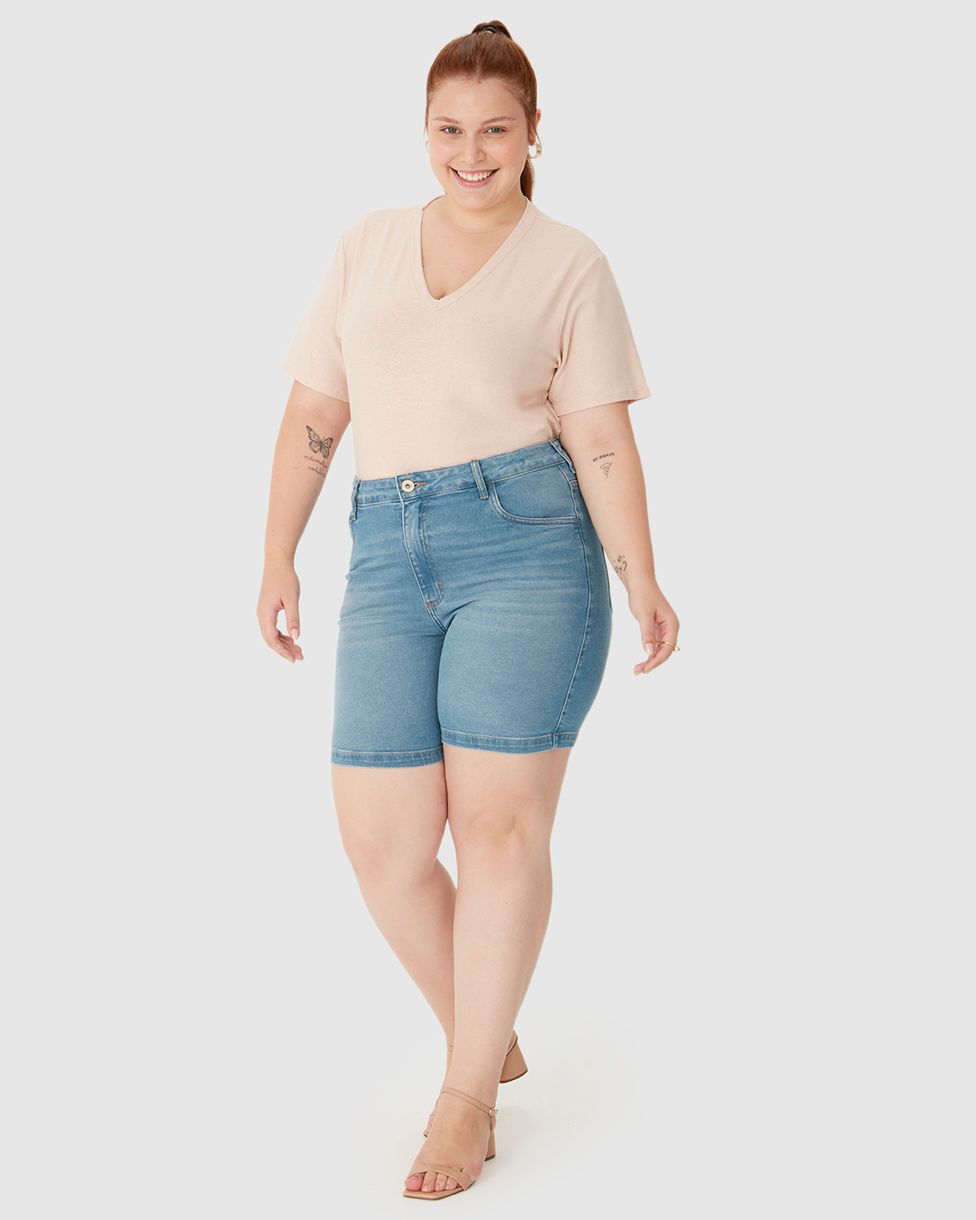 Bermuda Feminina Plus Size Boyfriend Em Jeans Com Elastano