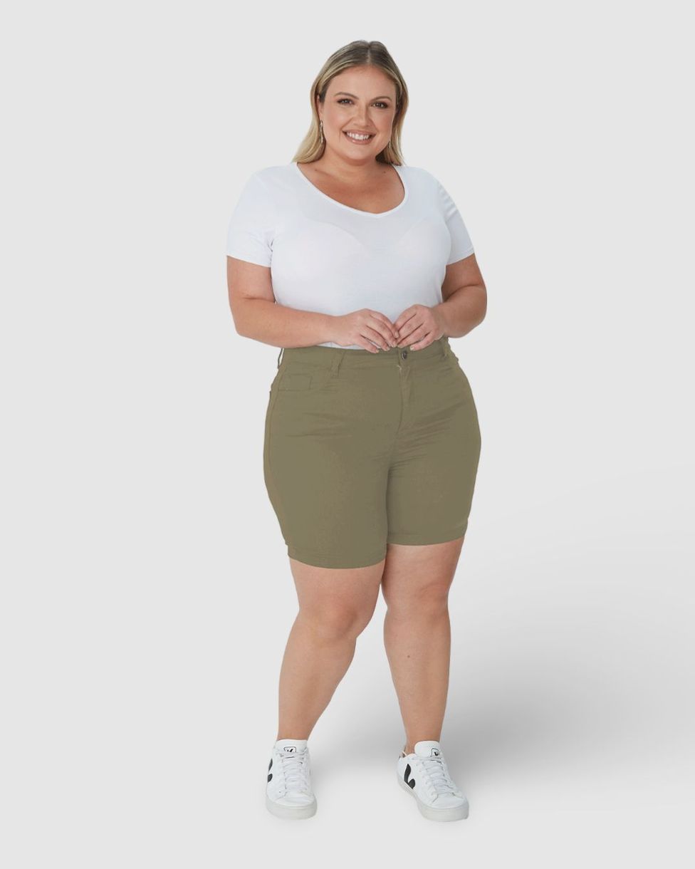 Bermuda Feminina Plus Size Comfort Cintura Média Em Sarja Com Elastano