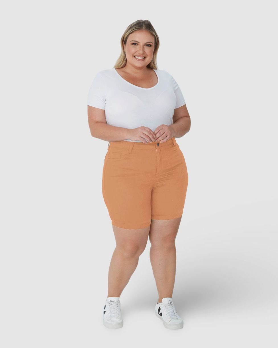 Bermuda Feminina Plus Size Comfort Cintura Média Em Sarja Com Elastano
