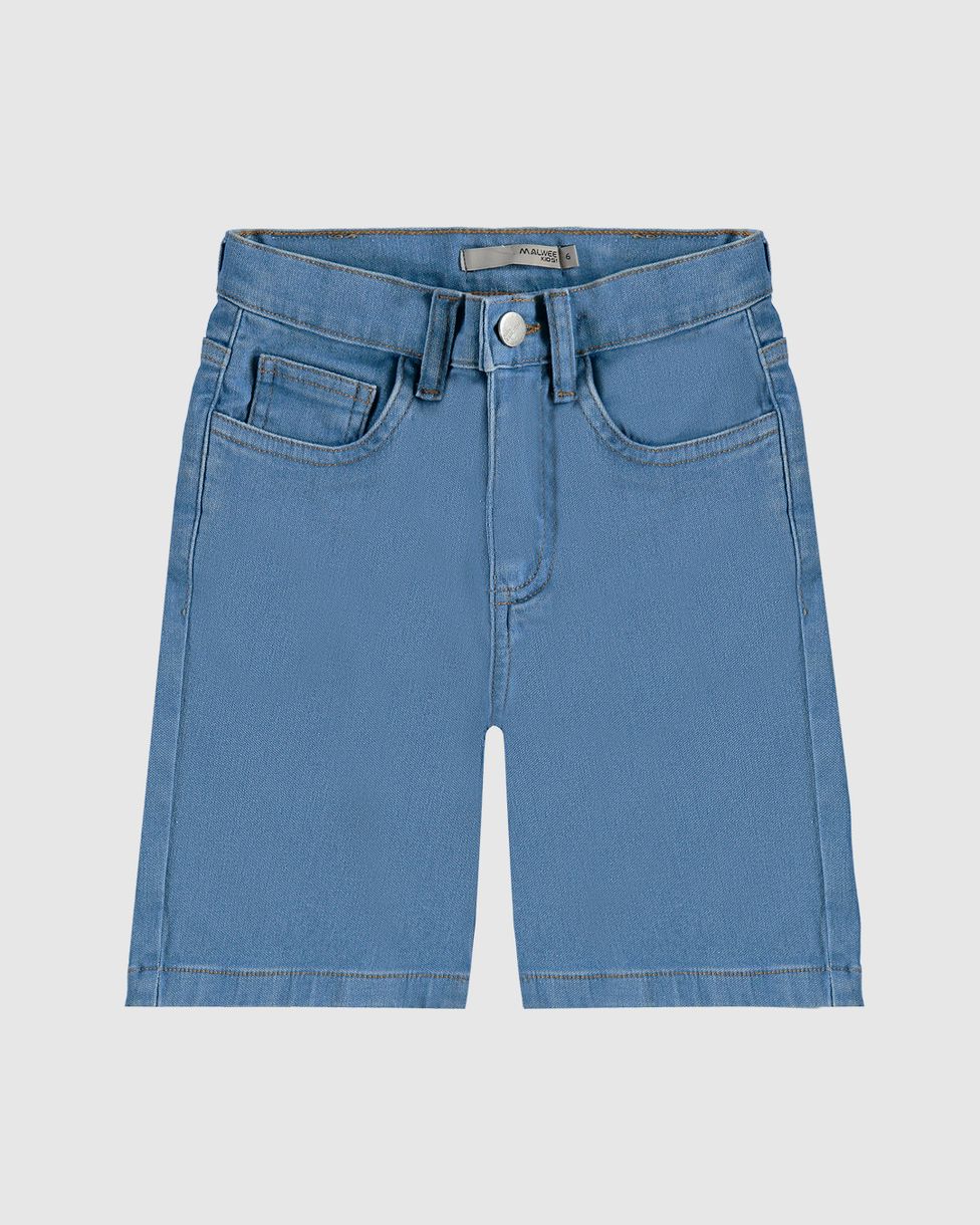 Bermuda Infantil Menino Cintura Elástico Ajustável Em Jeans Moletom Malwee Kids Azul - 1