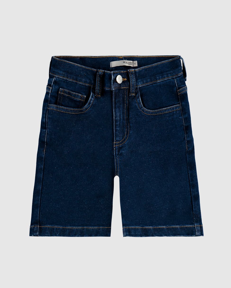 Bermuda Infantil Menino Cintura Elástico Ajustável Em Jeans Moletom Malwee Kids Azul - 1