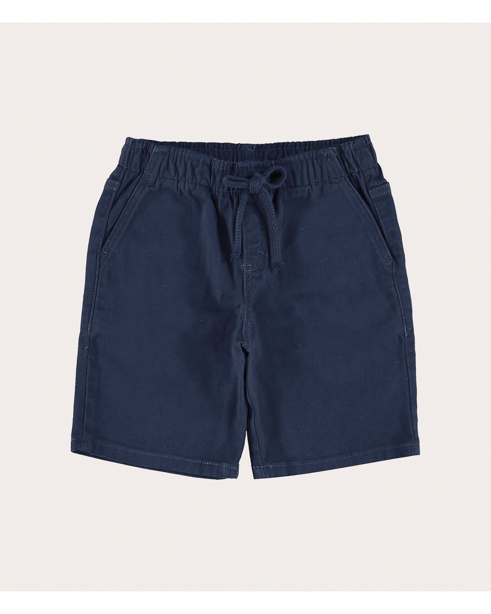 Bermuda infantil feita em sarja com elastano. Uma bermuda super prática, esse modelo de cintura média possui cós de elástico com cadarço decorativo e bolsos frontais funcionais. Também apresentando a modelagem Tradicional, perfeita para brincar e feita em sarja com elastano, sendo um tecido plano mais encorpado que absorve o calor externo e com elastano, que traz maior conforto para a peça. Combine com camiseta Malwee Kids e tênis baixo!