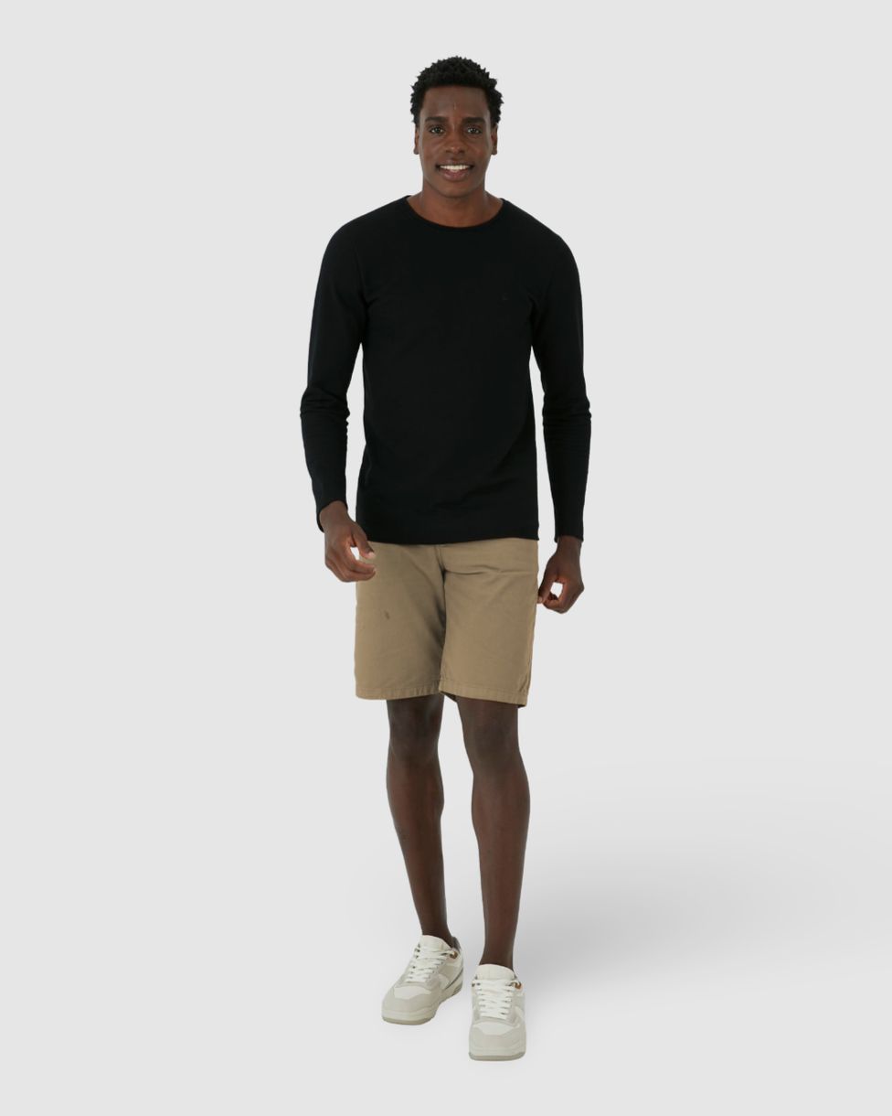 A Bermuda Masculina Cintura Média Em Sarja Com Elastano é a escolha ideal para homens que buscam conforto e estilo em uma peça versátil. Confeccionada em sarja com elastano, esta bermuda proporciona flexibilidade e um toque suave, ideal para o uso diário. A cintura média oferece um ajuste seguro e confortável, enquanto os bolsos frontais e traseiros garantem praticidade para carregar pequenos itens essenciais.