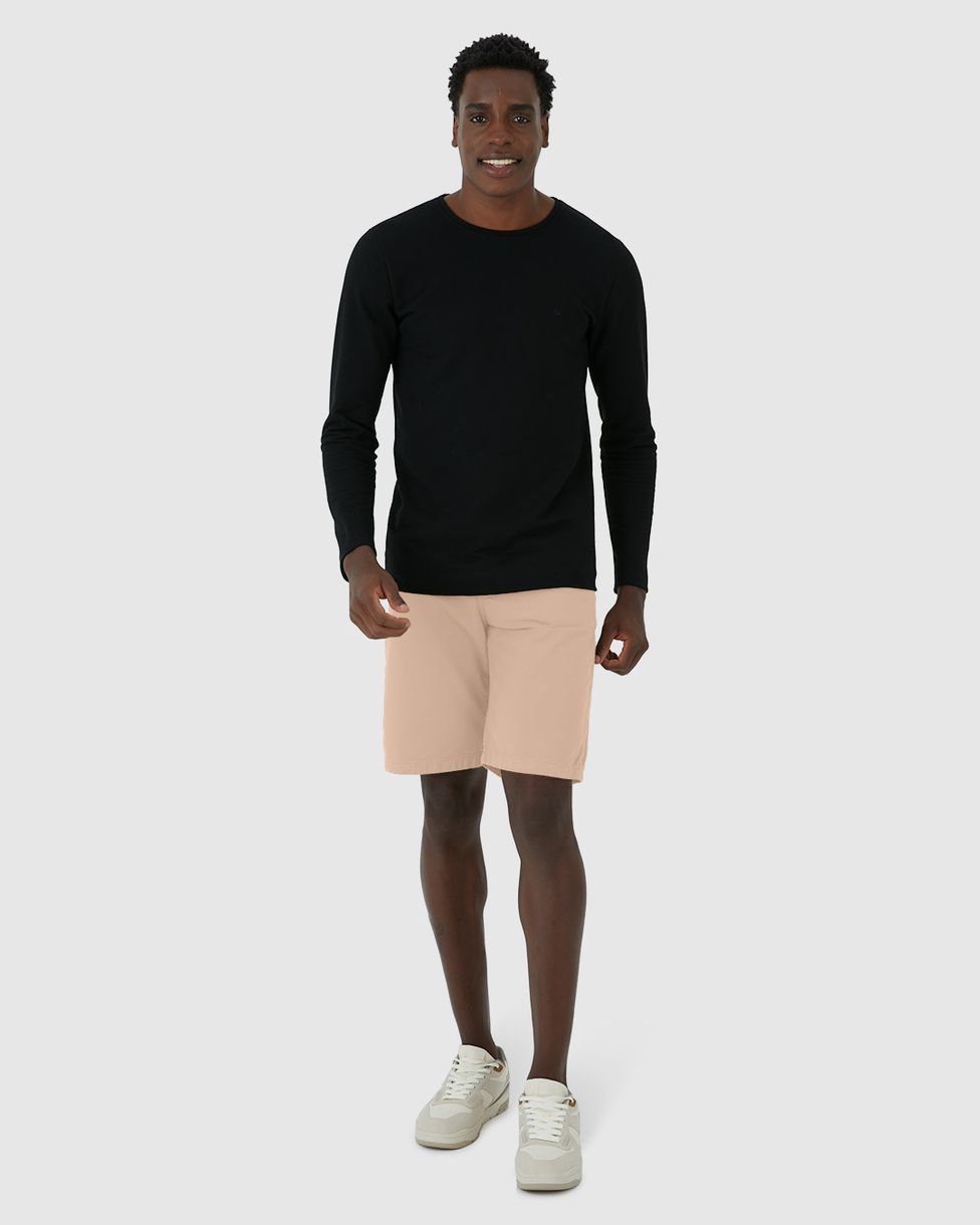 A Bermuda Masculina Cintura Média Em Sarja Com Elastano é a escolha ideal para homens que buscam conforto e estilo em uma peça versátil. Confeccionada em sarja com elastano, esta bermuda proporciona flexibilidade e um toque suave, ideal para o uso diário. A cintura média oferece um ajuste seguro e confortável, enquanto os bolsos frontais e traseiros garantem praticidade para carregar pequenos itens essenciais.