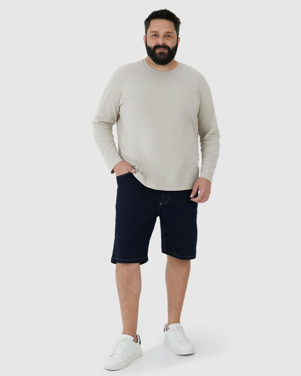 Bermuda Masculina Plus Size Bolso Funcional Em Jeans Com Elastano