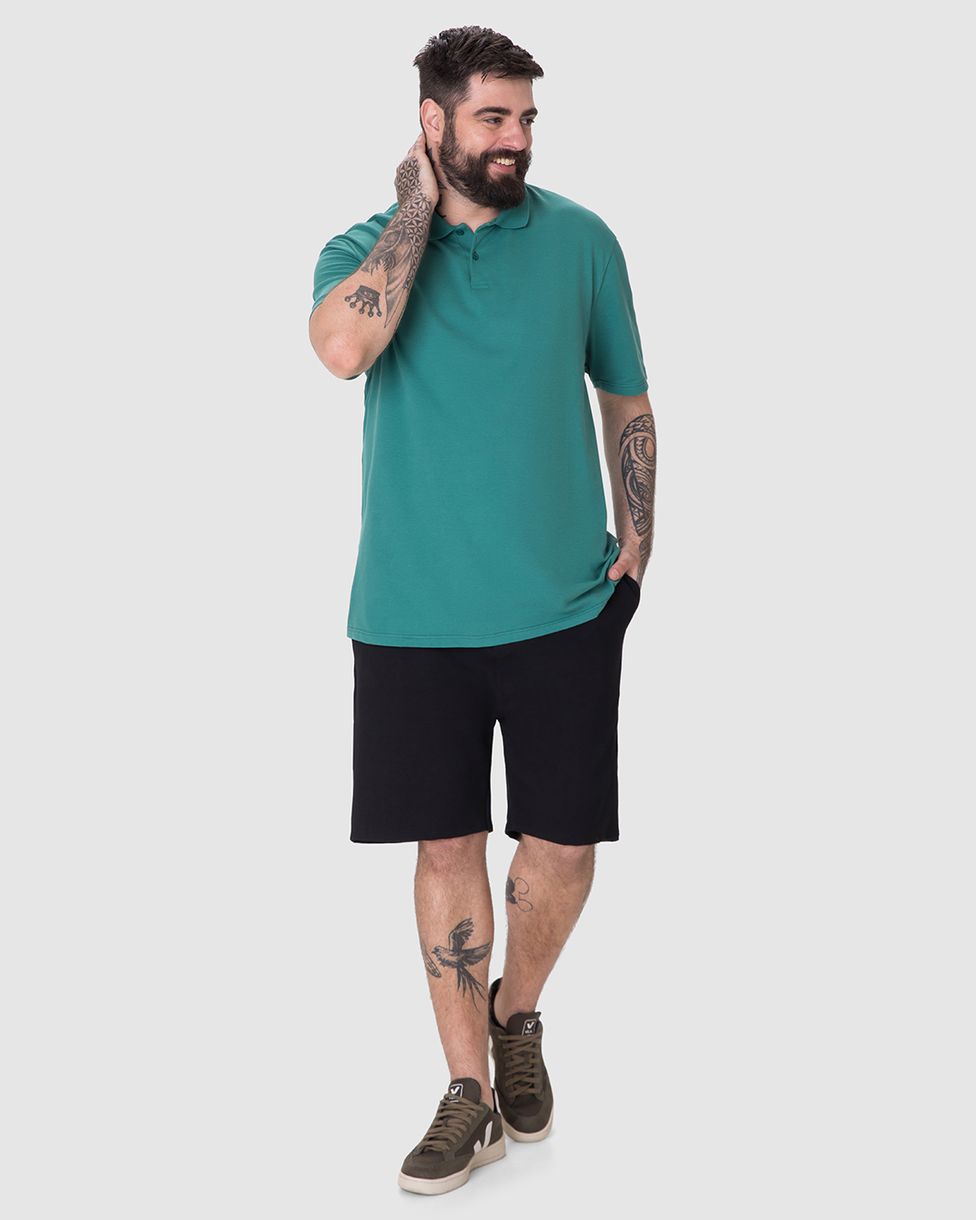 Bermuda Masculina Plus Size Cadarço E Bolso Funcional Em Moletom Sarjado Preto - G1