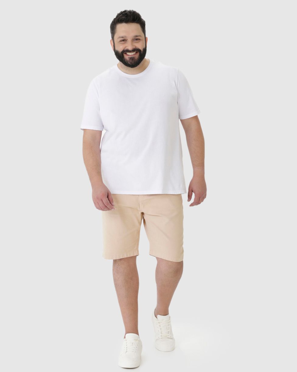 Bermuda Masculina Plus Size Slim Cintura Média Em Sarja Com Elastano