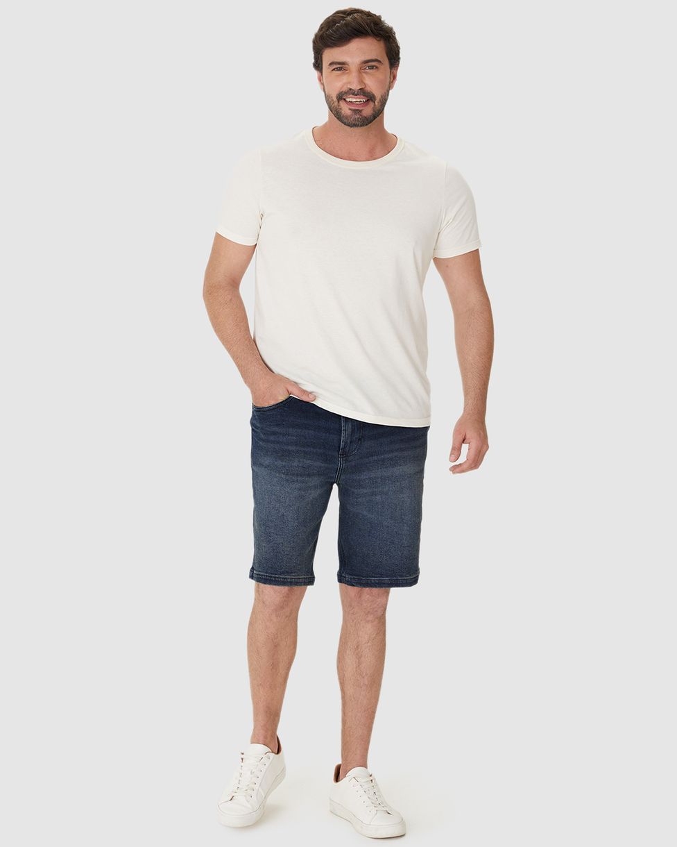 Bermuda Masculina Slim Bolso Funcional Em Jeans Com Elastano