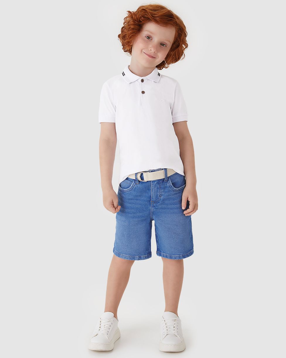 A Bermuda Menino Acompanha Cinto Em Jeans Com Elastano - Carinhoso oferece conforto e estilo para o dia a dia dos garotos. Com tecido flexível e detalhes modernos, é perfeita para diversas ocasiões, garantindo liberdade de movimentos e praticidade.