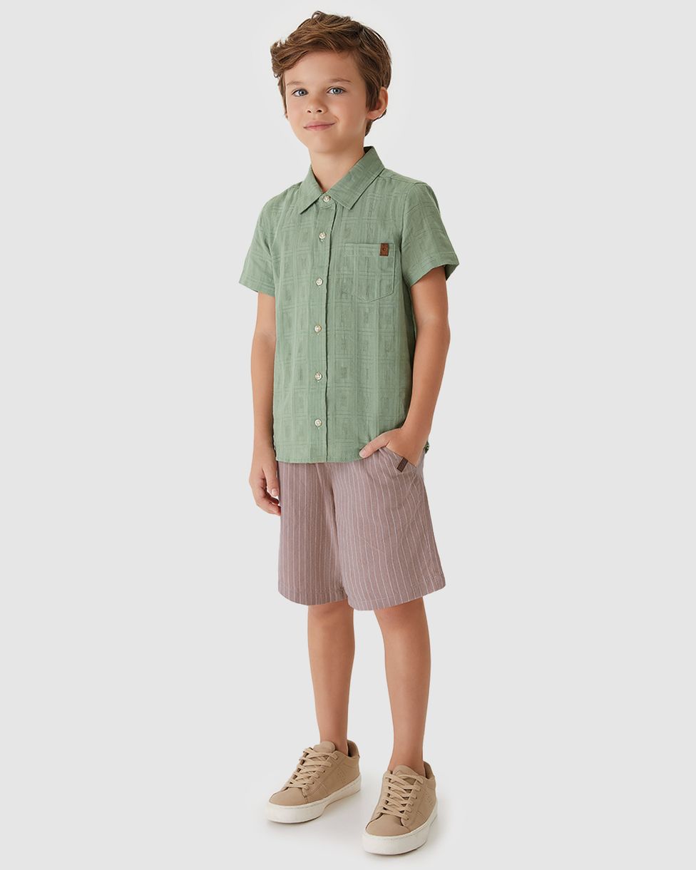 A Bermuda Menino Listrada Cós Ajustável Em Tecido Flamê Leve - Carinhoso é ideal para garantir conforto e praticidade nos dias quentes. Com tecido macio e design moderno, oferece ajuste perfeito na cintura para acompanhar o crescimento das crianças com muito estilo.