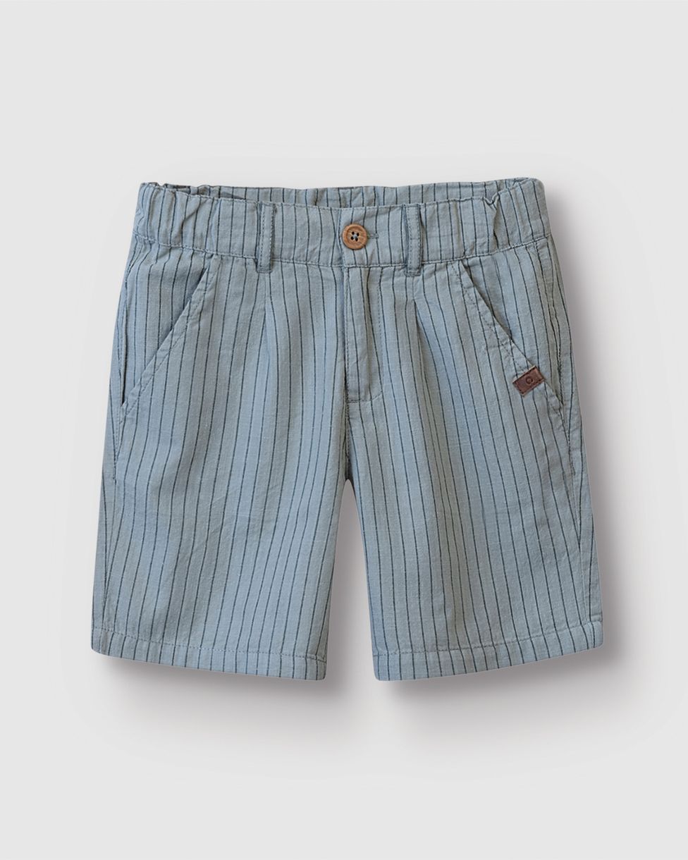 Bermuda Menino Listrada Cós Ajustável Em Tecido Flamê Leve - Carinhoso