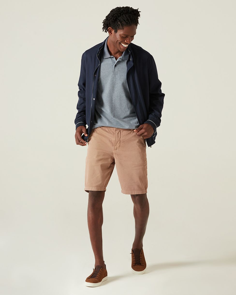Bermuda confeccionada em sarja com elastano. Modelagem slim, possui caimento ajustado no corpo. Modelo possui cintura média, cós aplicado com passantes, fechamento frontal por botão e zíper. Bolso frontal no modelo faca e bolso posterior funcional. Uma peça casual e cheia de estilo e conforto para suas produções. Invista com camiseta estampada e divertida e tênis slip on.