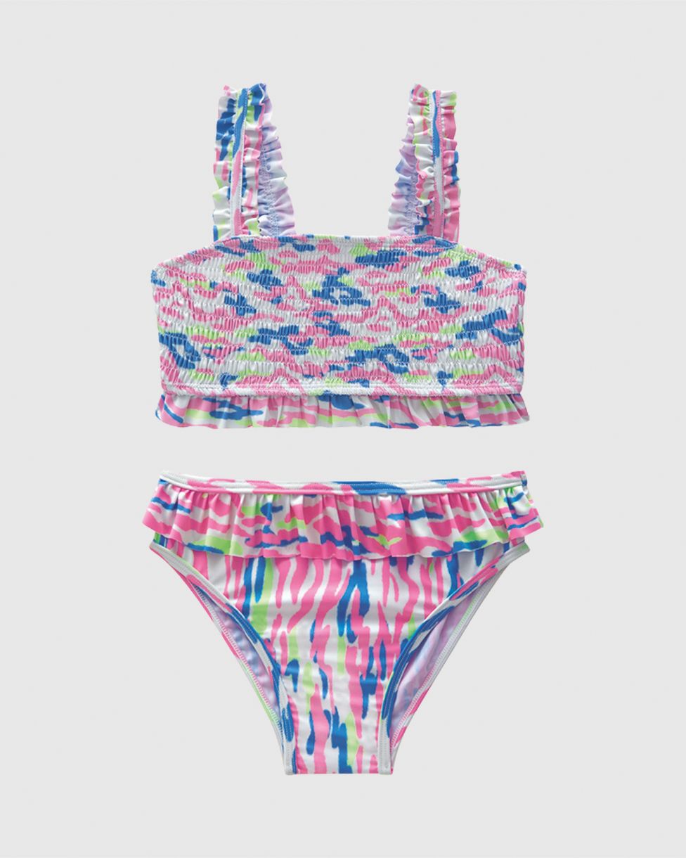 O Biquíni Infantil Menina Alça Elástica E Babados Em Malha UV50+ Malwee Kids une conforto e charme para os dias de praia e piscina. Com alças elásticas e delicados babados, o conjunto oferece liberdade de movimento e proteção contra raios solares, graças à malha com proteção UV50+.