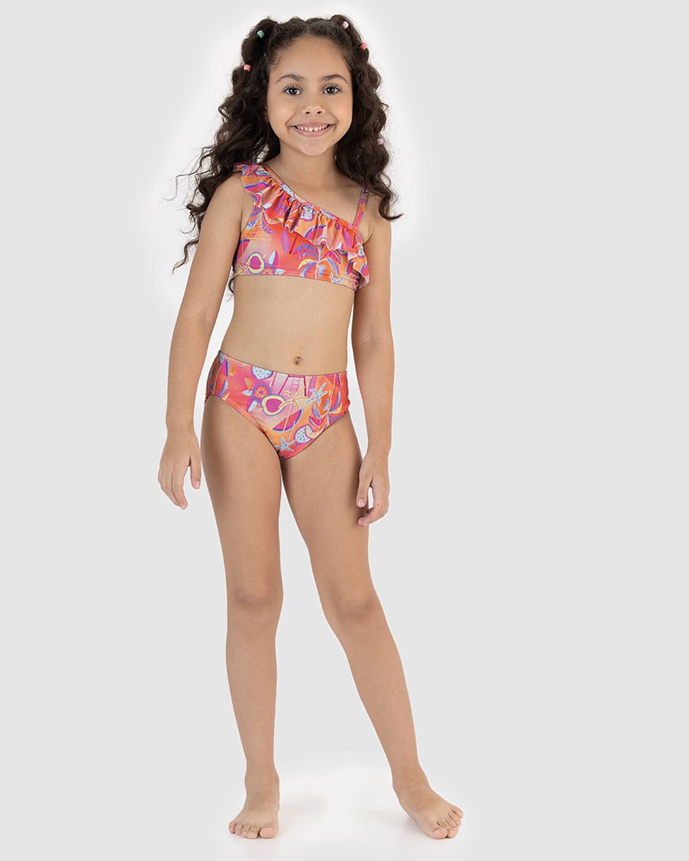 Biquíni Infantil Menina Decote Com Babado Em Malha UV50+ Malwee Kids Laranja - 10
